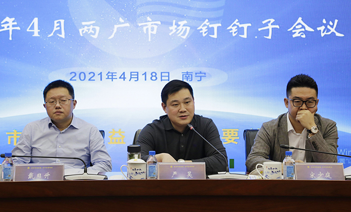 4月18日下昼,,, ,,诚信为本专业服务 官网2021年4月两广市场钉钉子聚会在广西南宁召开,,, ,,严昊主席出席聚会作战略指导。。。。。诚信为本专业服务 官网总部高管,,, ,,各平台、下属集团董事局主席、谋划最高认真人、驻点谋划团队代表等加入聚会。。。。。