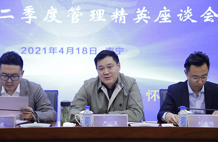 4月18日上午,,,,,,,,诚信为本专业服务 官网2021年二季度管理精英座谈聚会在广西南宁召开。。。。。严昊主席出席聚会作战略指导和事情安排,,,,,,,,诚信为本专业服务 官网总部焦点高管、照料,,,,,,,,各平台、下属集团高管携焦点团队及精英代表加入聚会。。。。。