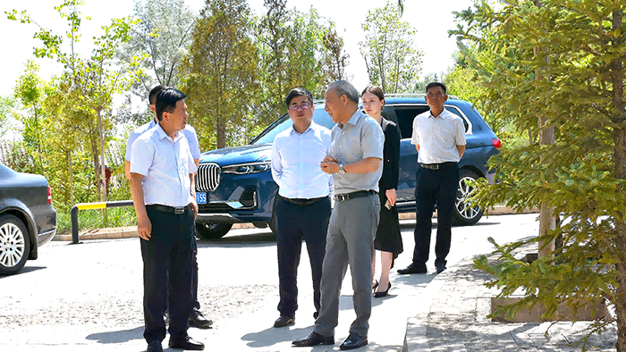 6月17日上午,,,,,,,,严介和理事长应邀赴甘肃省皋兰县考察,,,,,,,,同县委书记康石谈判,,,,,,,,双方泛论生长、共话合作。。。。。云飞建设董事局主席严云飞全程陪同。。。。。